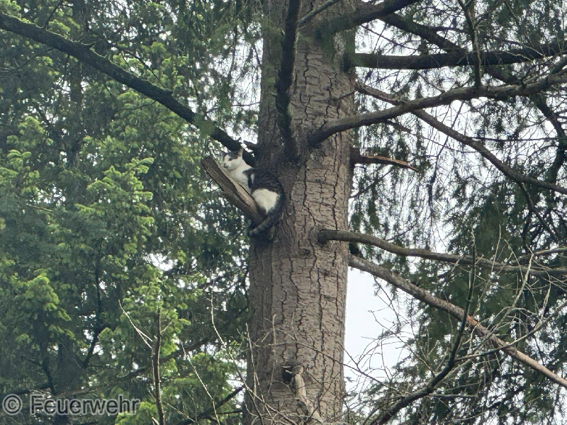 Zu einer Tierrettung wurden die Wehren in die Ortslage Bonsbeuren alarmiert. Hier kletterte eine Katze auf einen Baum kam in ca. 15 m Höhe nicht mehr selbstständig runter. Auf Grund der Höhe und der Lage des Baumes musste die Drehleiter zur Unterstützung nachgefordert werden.