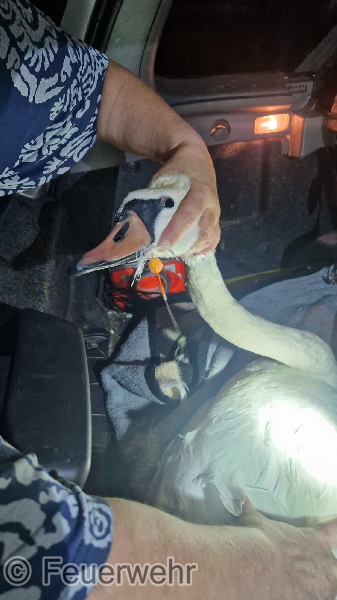 In der Ortslage Traben wurde durch Passanten ein verletzter Schwan gemeldet. Dieser konnte durch die Feuerwehr eingefangen und zu einem Tierarzt gebracht werden.
