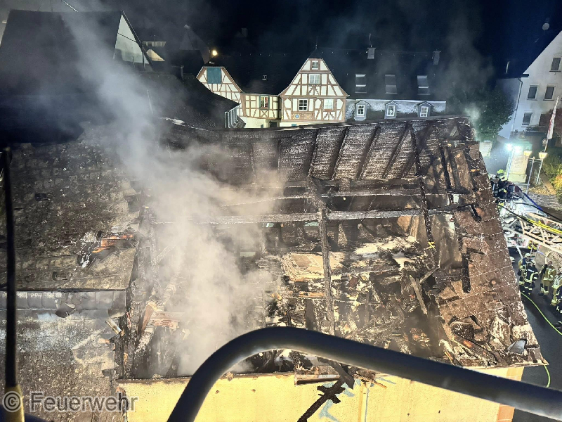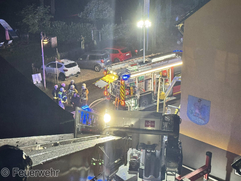 Zu einem gemeldeten Wohnungsbrand mit Menschenrettung wurden die Wehren in die Ortslage Kröv alarmiert. Vor Ort konnte eine Scheune vorgefunden werden, die sich bereits im Vollbrand befand und das sich das Feuer im Dachbereich auf zwei weitere Wohnhäuser übergriff. Während der Erkundung stellte sich glücklicherweise heraus, dass sich keine Personen mehr in den betroffenen Gebäuden befanden. Sofort wurde damit begonnen, von außen mit mehreren Strahlrohren einen Löschangriff durchzuführen. Hier kam auch eine zweite Drehleiter zum Einsatz. Gleichzeitig wurde in einem der Dachgeschosse eines Wohnhauses mit mehreren Atemschutztrupps der Innengriff durchgeführt. Um die Wasserversorgung sicherzustellen, mussten von der Mosel aus mehrere Schlauchleitungen zur Einsatzstelle verlegt werden. Im späteren Verlauf des Einsatzes wurde die Scheune mit Schaum geflutet, um die letzten Glutnester zu ersticken. Auf Grund des Brandes mussten mehrere in der Nähe befindliche Ferienwohnungen evakuiert werden. Hier wurden 21 Personen übergangsweise in der Weinbrunnenhalle untergebracht und durch Kräfte des Deutschen Roten Kreuz und des Malteser Hilfsdienstes betreut. Diese konnten später wieder in die Wohnungen zurück kehren. Bei dem Einsatz wurden zwei Personen mit Verdacht auf Rauchgasvergiftung an den Rettungsdienst übergeben. Für die Dauer des Einsatzes musste die B53 in der Ortslage voll gesperrt werden.