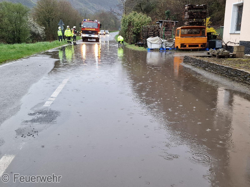 Auf der K65, Kövenig Richtung Traben, kam es auf Grund der starken Niederschläge und eines gebrochenen Abwasserrohres zu einer Überflutung, welche ebenfalls in die angrenzenden Häuser einzudringen drohte. Durch die Feuerwehr wurden die Gullis geöffnet und mit Hilfe einer Tauchpumpe ausgesaugt.