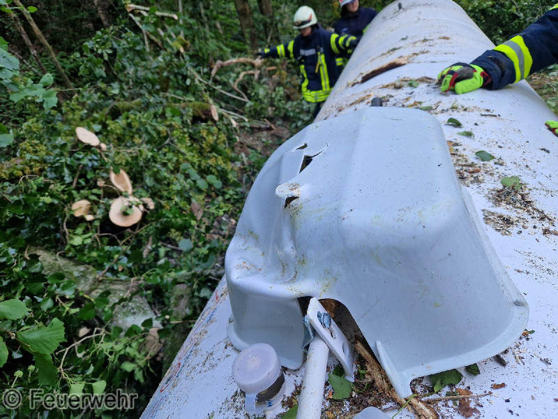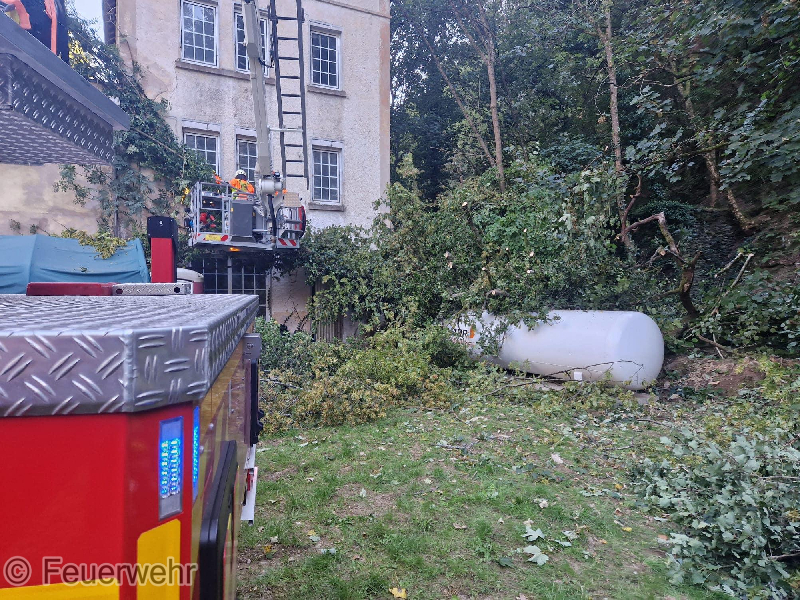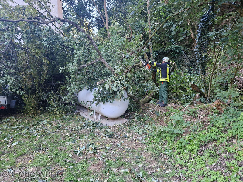 In der Ortslage Trarbach fiel ein Baum auf einen Gastank. Da Teile des Baumes auf dem Absperrhahn des Tanks lagen mussten diese mittels Kettensäge zerlegt werden. Anschließend wurden der Tank und der Absperrhahn auf Beschädigungen kontrolliert. Hier konnten keine Beschädigungen festgestellt werden.