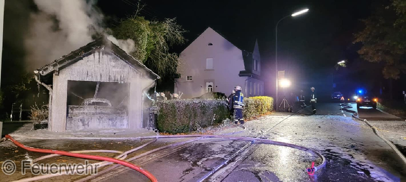 Zu einem gemeldeten Garagenbrand wurden die Wehren in die Ortslage Bausendorf alarmiert. Bereits auf der Anfahrt konnte von den Einsatzkräften ein heller Feuerschein wahrgenommen werden. Vor Ort brannte eine Garage in voller Ausdehnung. Auch ein in der Garage abgestellter PKW fiel den Flammen zum Opfer. Umgehend wurde von außen mit der Brandbekämpfung begonnen. Im weiteren Einsatzverlauf wurde zum eindämmen der Flammen im inneren der Garage Löschschaum eingesetzt. Eine Brandausbreitung auf das daneben stehende Wohnhaus konnte verhindert werden. Verletzt wurde niemand.