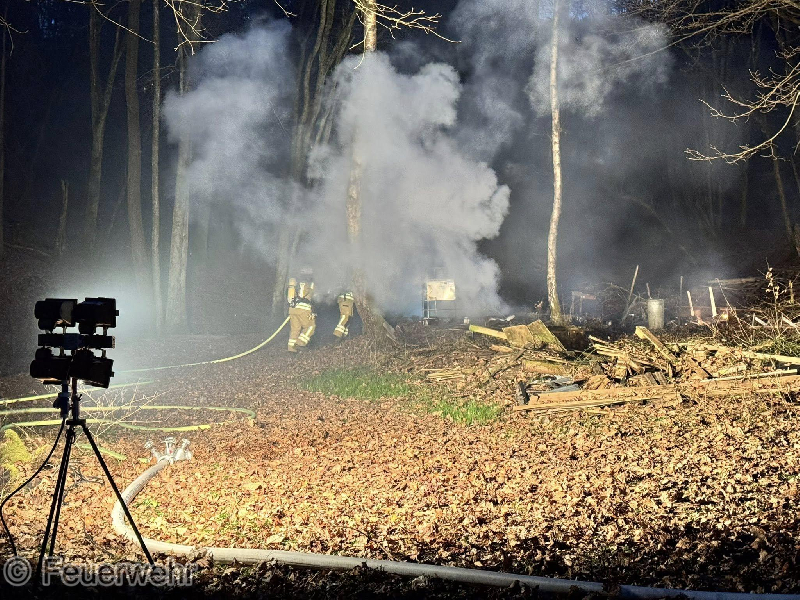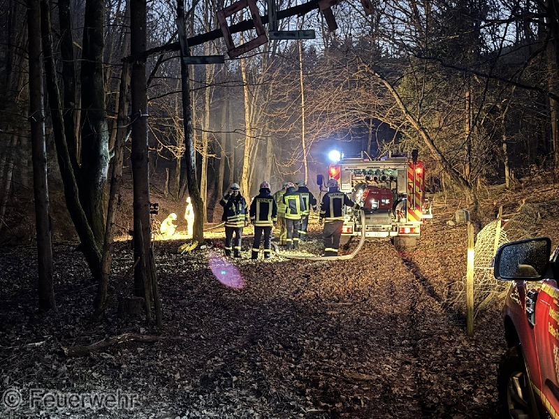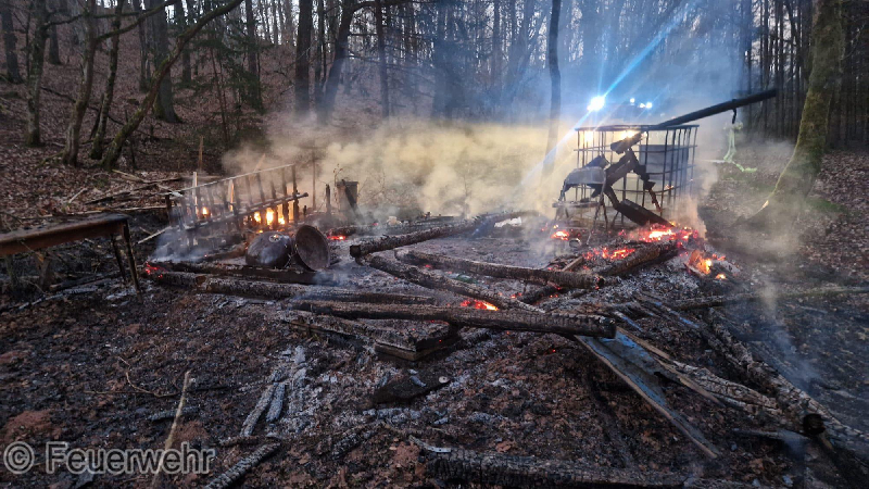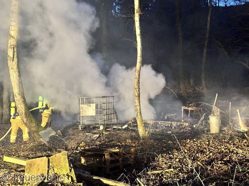 Zu einem Gartenhausbrand wurde die Feuerwehr in ein Waldgebiet in der Ortslage Bengel alarmiert. Auf Grund der erschwerten Anfahrt durchs Gelände und einem umgestürzten Baum, gestaltete sich die Anfahrt zum Einsatzort schwierig. Vor Ort konnten die brennenden Überreste eine Holzhauses vorgefunden werden. Durch die Feuerwehr konnten diese abgelöscht werden.