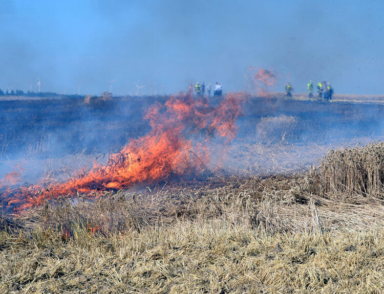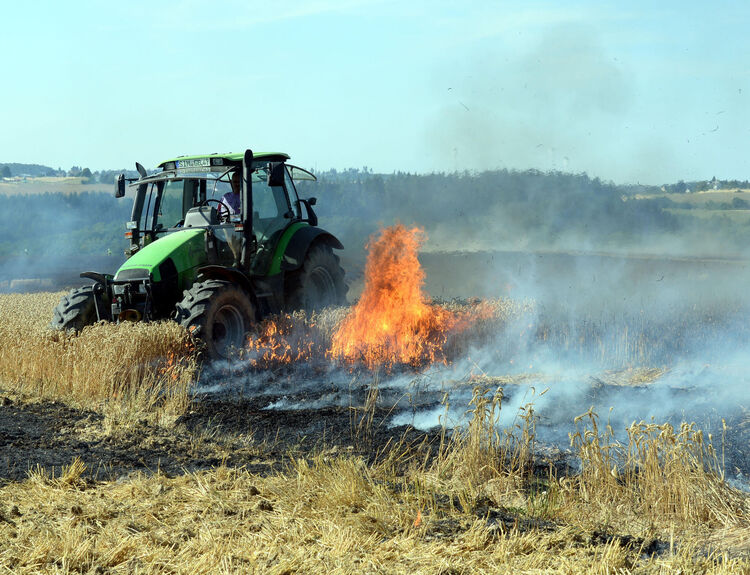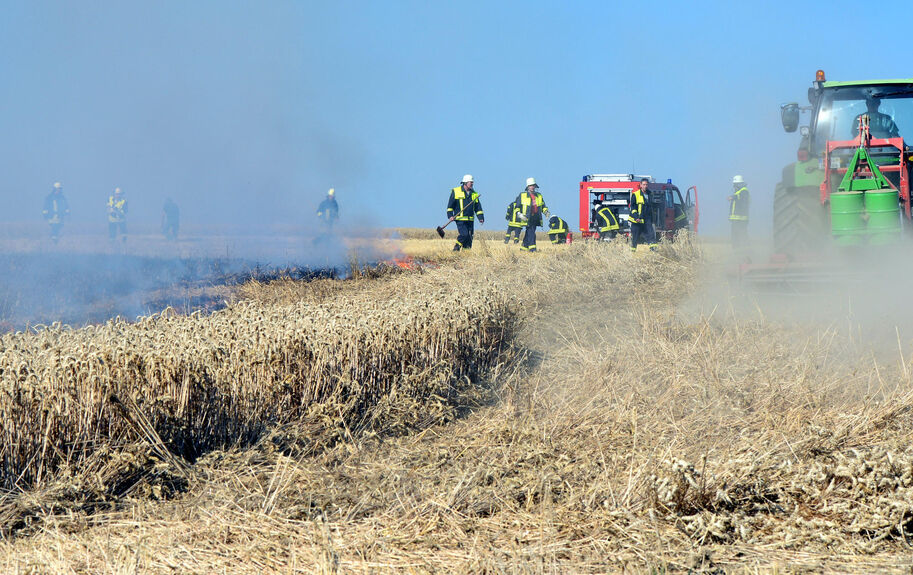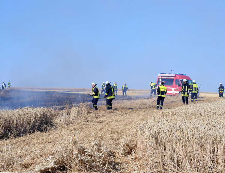 Gegen 17 Uhr ging der Alam bei den Feuerwehren ein. Schon von Weitem sah man eine große Rauchsäule aufsteigen. Bei Arbeiten mit einem Mähdrescher hat sich dürres Getreide und Stroh entzündet.