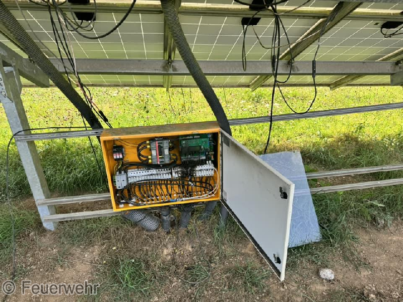 Auf Grund eines technischen Defekts an einer PV-Anlage kam es zu einem Schmorbrand in einem Schaltschrank der Anlage. Dieser konnte von der Feuerwehr gelöscht und ein Übergreifen auf weitere Anlagenteile und trockenes Gras verhindert werden.